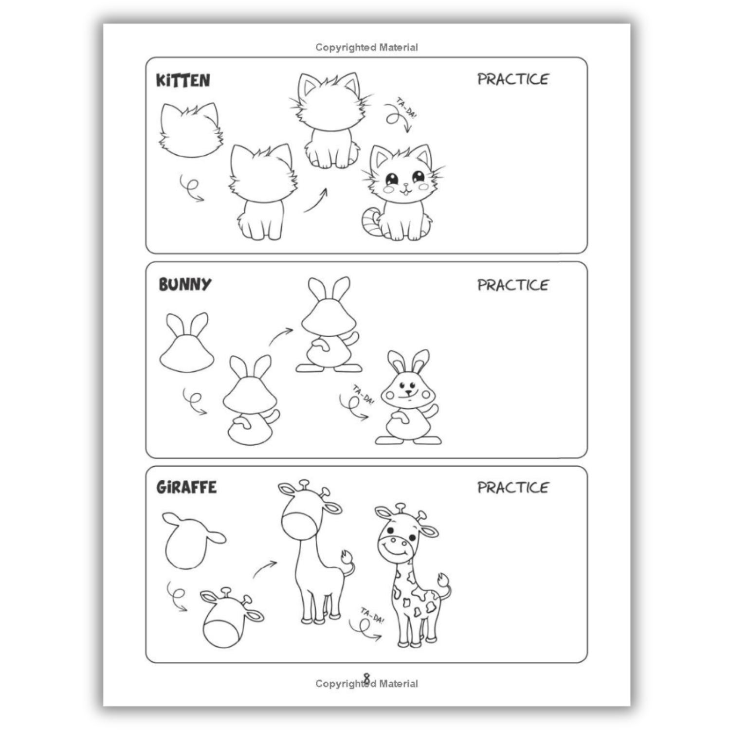 Features of this book: Simple Step-by-Step Instructions with clear directions, arrows, and illustrations, children can quickly learn to draw cute animals, fruits, and many other amazing things Practice Space with a dedicated area for freehand drawing and experimenting. Coloring Fun after drawing, when kids can color their creations, enhancing their artistic expression. Awesome Gift for Kids to share special moments together and having a fun experience. Get this delightful drawing book today and unlock your child's artistic potential!