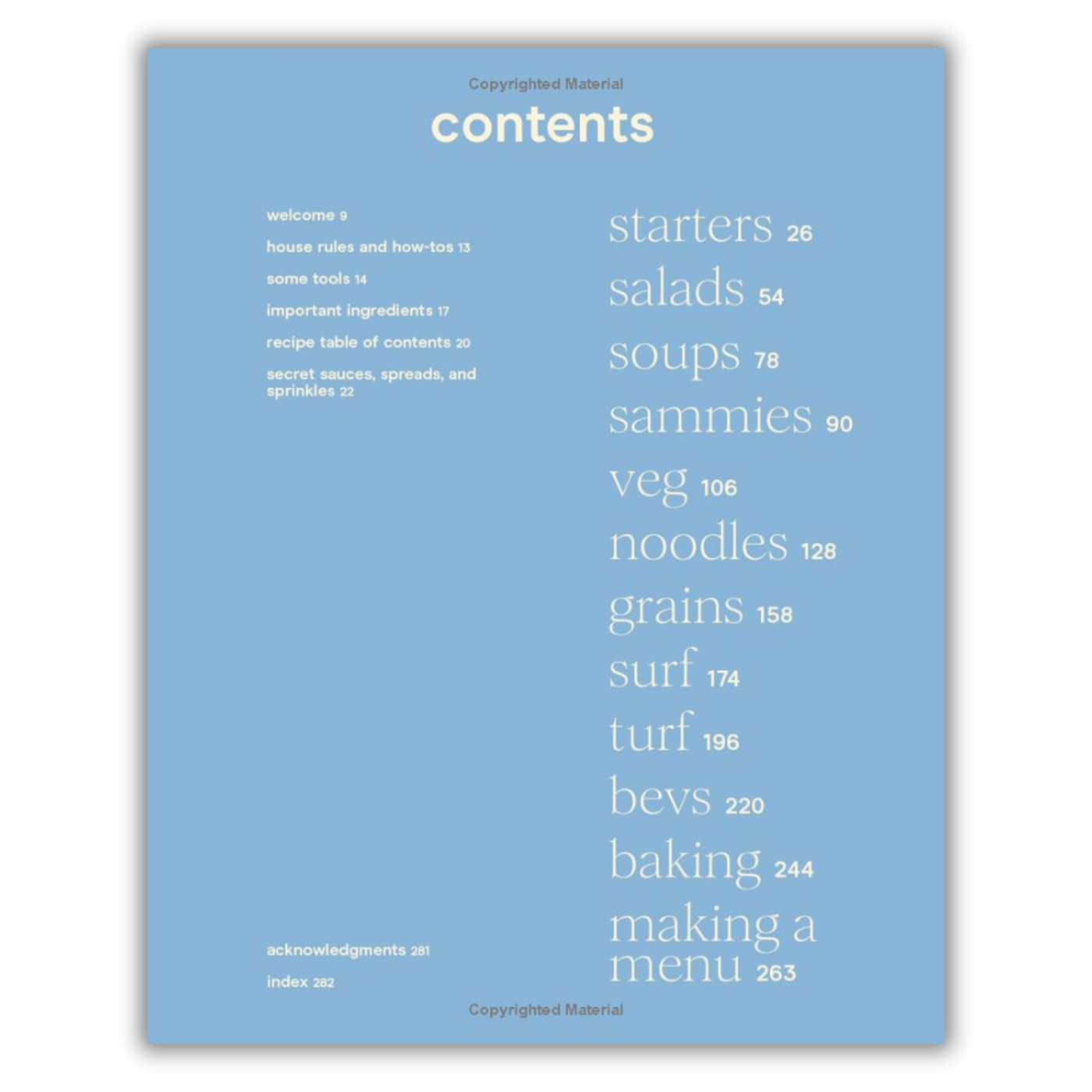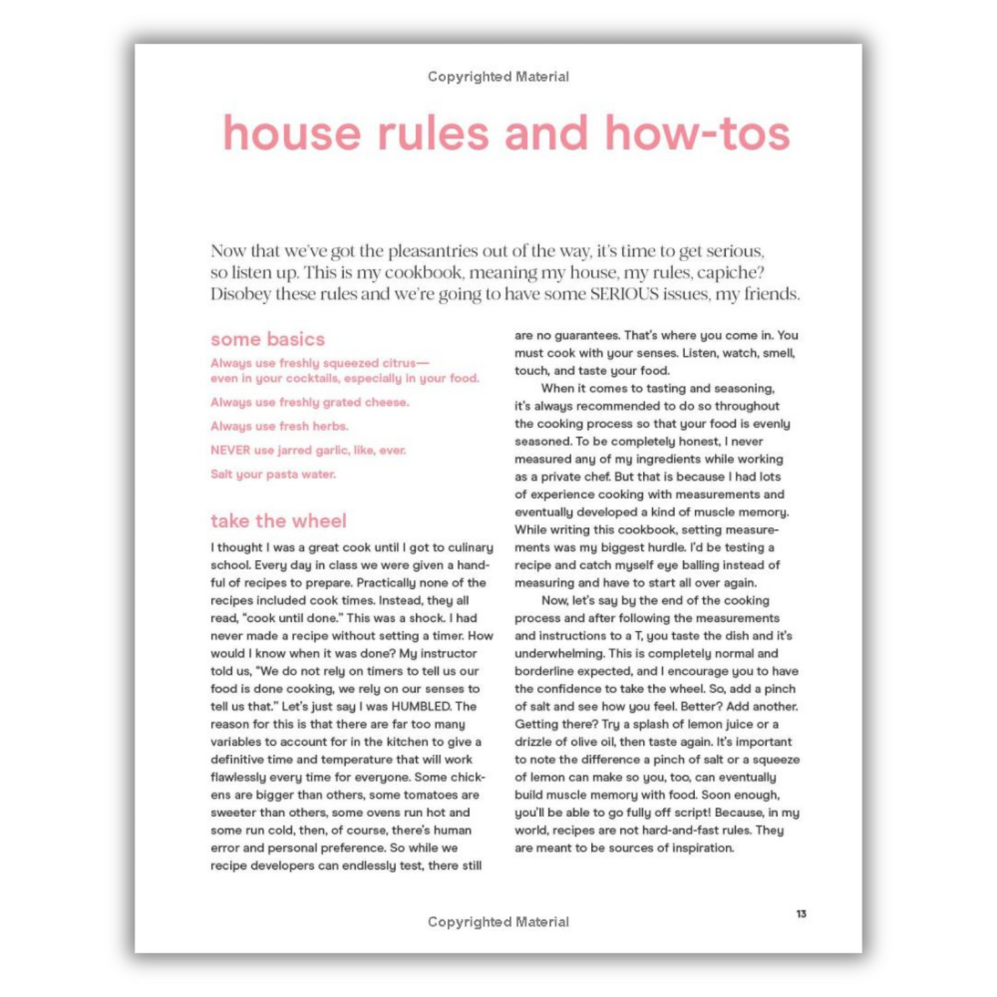 Page from a cookbook with text on house rules and how-tos